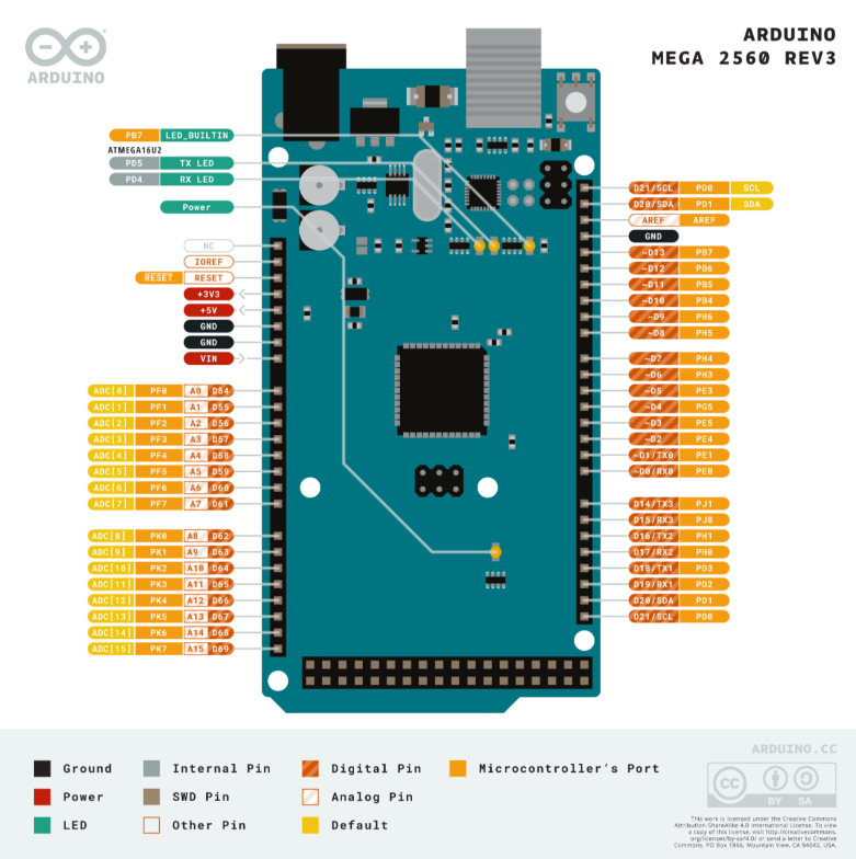 회로 연결은 위의 회로도와 아래 표를 참고하여 아두이노 Mega2560에 모든 센서들을 연결한다.